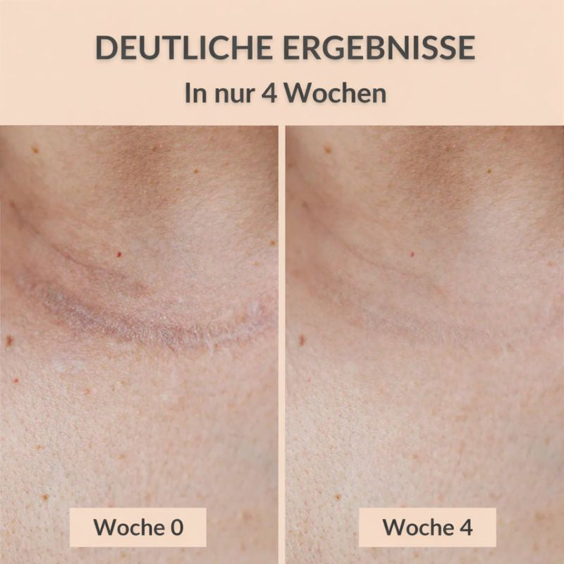 Die Ergebnisse können individuell variieren, aber im Allgemeinen berichten Anwender von Verbesserungen bei neuen Narben nach 4–6 Wochen und bei älteren Narben nach 3–4 Monaten. Für optimale Ergebnisse regelmäßig anwenden.