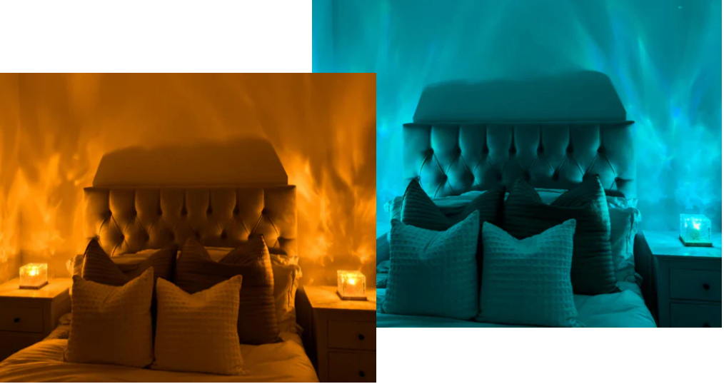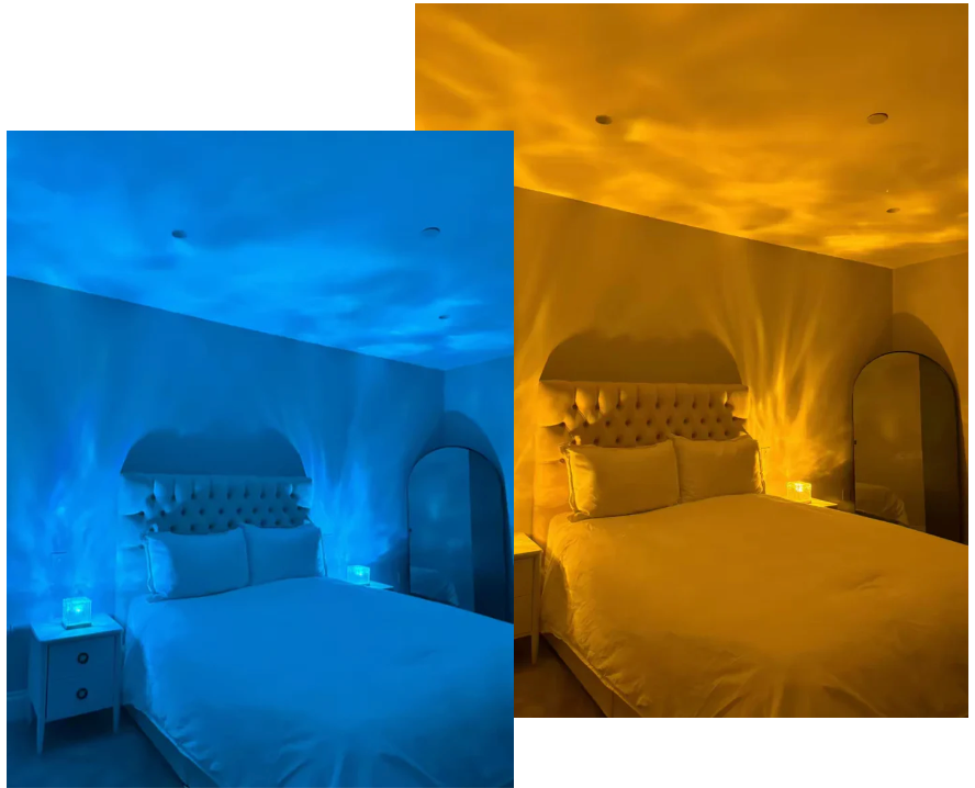 Die Ozean™ Lampe bietet eine breite Palette von 16 Farben, die mit der mitgelieferten Fernbedienung einfach eingestellt werden können. Mit dieser Funktion können Sie die Atmosphäre mühelos an Ihre Vorlieben anpassen.